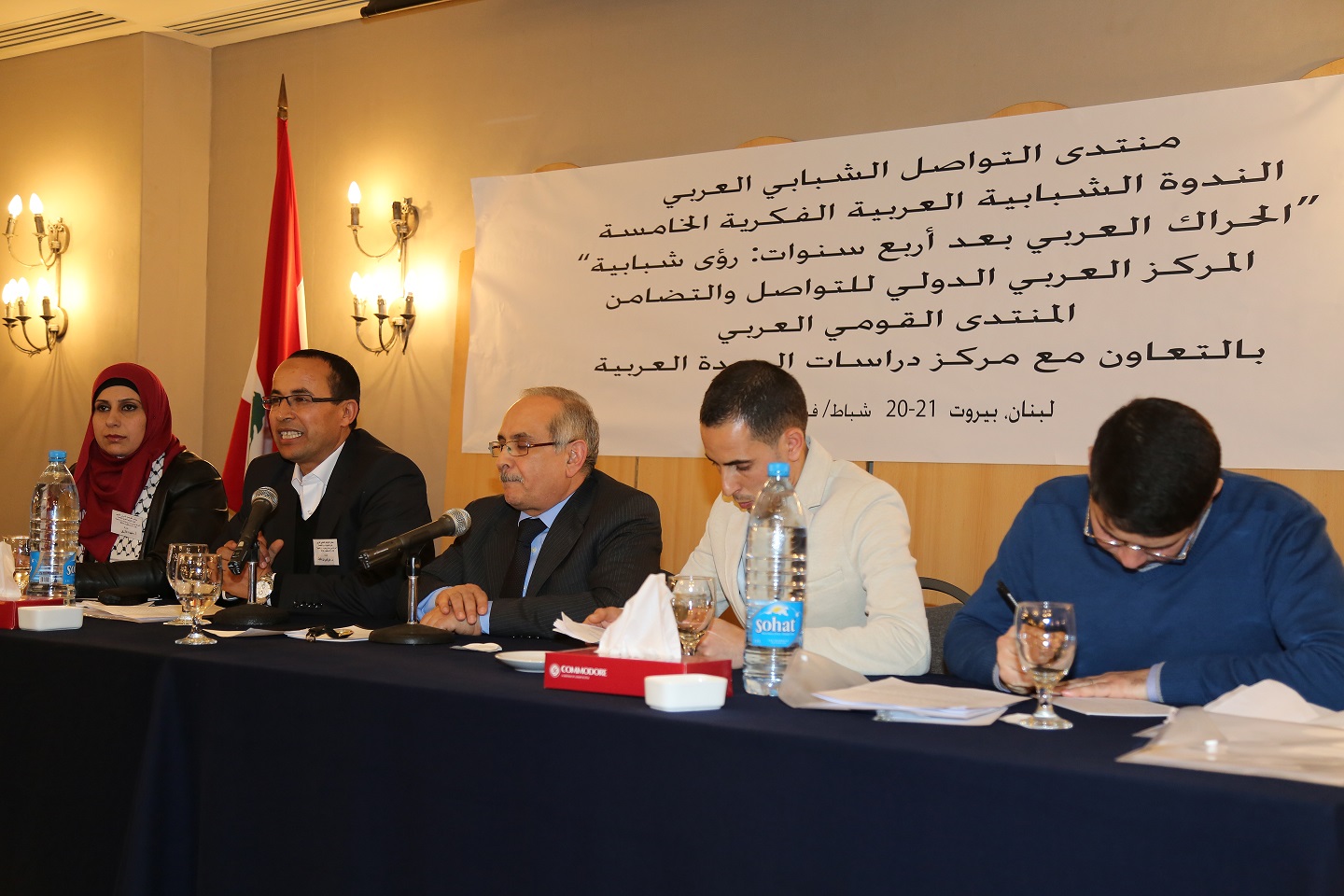 افتتح في العاصمة اللبنانية بيروت الندوة الفكرية الشبابية العربية الخامسة بعنوان " الحراك العربي بعد اربع سنوات: رؤى شبابية" في اوتيل الكومودور- الحمرا، وبحضور حشد من الشخصيات الثقافية والسياسية تقدمهم الاستاذ كمال شاتيلا رئيس المؤتمر الشعبي اللبناني، وممثل قائد الجيش العميد الركن البحري جوزيف واكيم، ممثلون عن سفارات الاردن والسودان والجمهورية الاسلامية الايرانية، واعضاء الحملة الاهلية لنصرة فلسطين وقضايا الأمة.