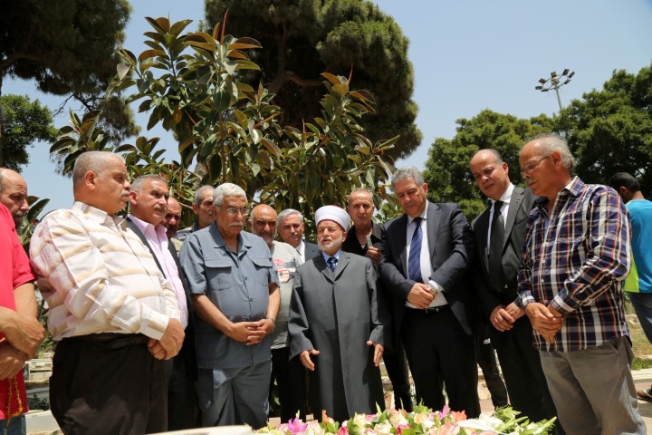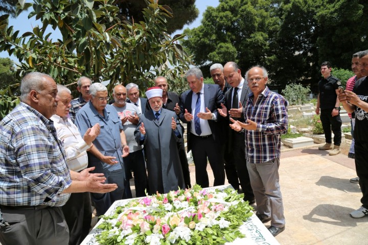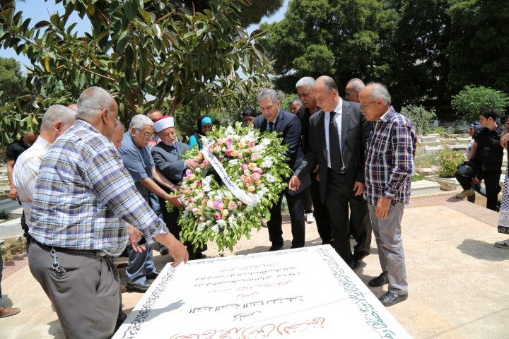 حيث قرأ الفاتحة على أرواح الشهداء ووضع اكليل من الورد على ضريح الحاج أمين الحسيني.