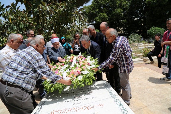 وأضاف: نحن نقف ونستذكر ذكرى عظيمة على قلب كل فلسطيني لا بل على قلب كل حر في هذا العالم ونقول رحم الله الحاج أمين الحسيني ورحم الله كل شهداء القضية الفلسطينية وكل من ناضل في سبيل هذه القضية ونستذكر في هذا الموقف كل شهدائنا وهم كثر منهم الشهيد الرمز القائد ابو عمار رحمه الله وكل إخوانه من الشهداء في اللجنة المركزية ابو جهاد الوزير وابو اياد وابو الهول.