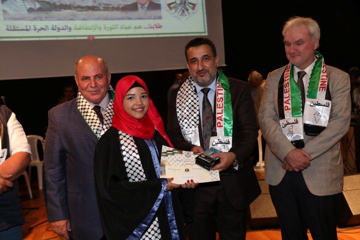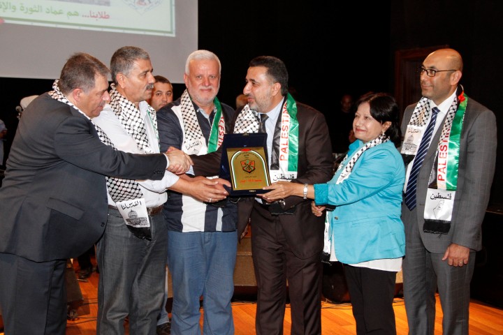 وختم قائلاً: الثورة بندقية ثائر، حجر طفل، منجل فلاح، ريشة فنان، قلم كاتب، مبضع جراح، وانتم اليوم تجددون عهد الإستمرار في مسيرة النضال حتى تحقيق اهدافنا بالحرية والاستقلال والعودة. مبارك لنا نجاحكم وسيروا على بركة الله لتحقيق الأماني والله يوفقكم لشعبكم ووطنكم فلسطين الحرة المستقله.