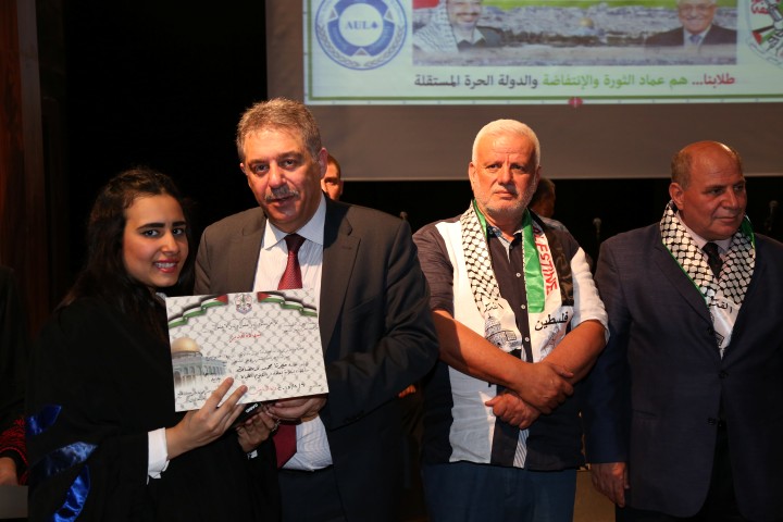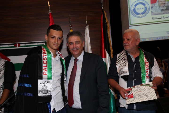 وختم طه: ايماناً منا برسالة العلم واحساساً بالمسؤولية تجاه أبناء الشعب الفلسطيني والذين نعتبرهم إخوة اعزاء يسرني ان اعلن عن تقديم منح وحسومات وتسهيلات بالدفع تكون خاصة بالطلاب الفلسطينيين الراغبين بالالتحاف بالجامعة تبدأمن ثلاثين بالمئة وتصل الى سبعين وستين بالمئة بالاضافة الى المنح الخاصة بالطلاب المتفوقين والتي تصل الى مئة بالمئة، مبارك لكم النجاح في يوم فرحكم هذا على أمل اللقاء بكم فوق ربوع الوطن الغالي فلسطين.