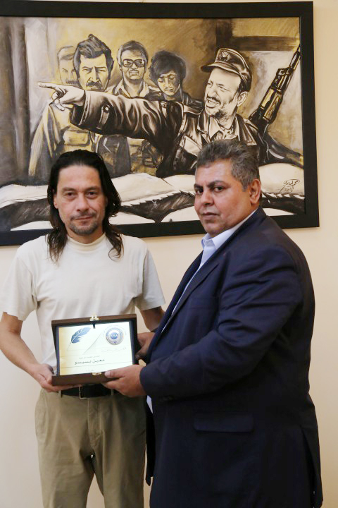 وفي وقت لاحق قام المستشار ماهر مشيعل بتسليم درع جامعة AUL الى نجل الشاعر توفيق بسيسو.