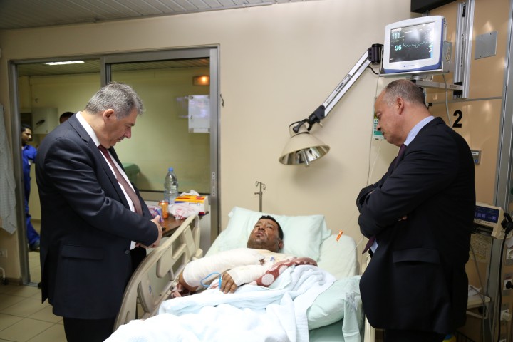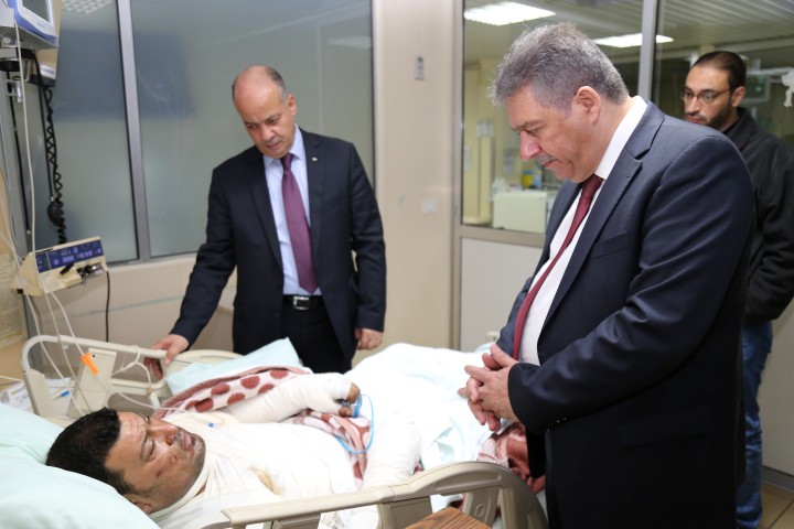 عاد سفير دولة فلسطين في لبنان اشرف دبور يرافقه مستشار اول حسان ششنيه، صباح اليوم، اللاجىء الفلسطيني (أمين سكر) في مستشفى الجعيتاوي للإطمئنان على وضعه الصحي بعد الحروق التي تعرض لها أمس.