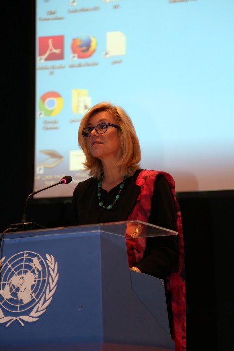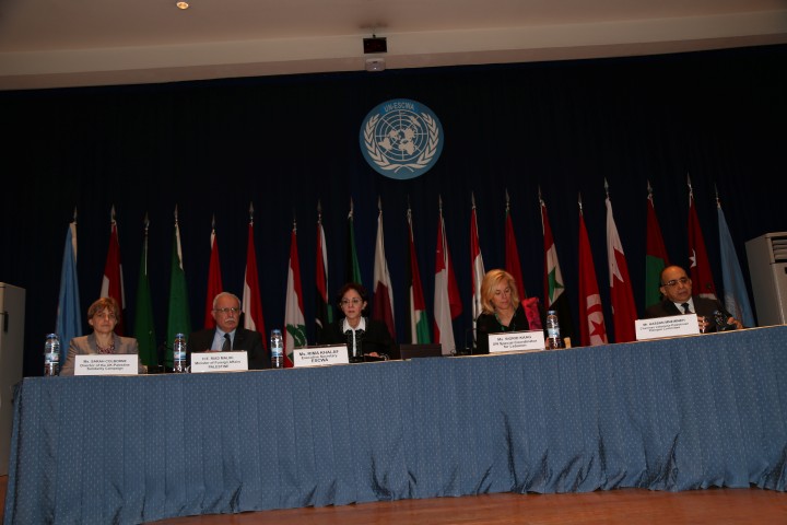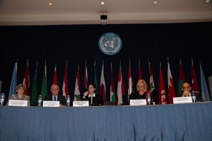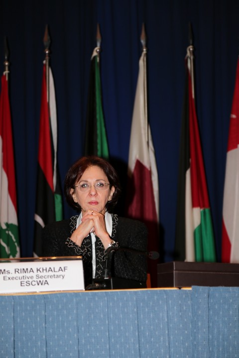وألقت وكيلة الأمين العام للأمم المتحدة الأمينة التنفيذية للاسكوا الدكتورة ريما خلف كلمة قالت فيها: "بين اجتماعنا هنا السنة الماضية واجتماعنا اليوم، استمرت اسرائيل في انتهاكاتها للقانون الدولي، استمرت في قتل المدنيين الفلسطينيين وحبس الأطفال وتعذيبهم، وصعدت في تدمير البيوت والحقول والممتلكات، وأمعنت في استغلال الموارد الطبيعية للفلسطينيين من معادن ومياه، وفي تلويث بيئتهم الحيوية. كل ذلك في خرق سافر للمواثيق الدولية".