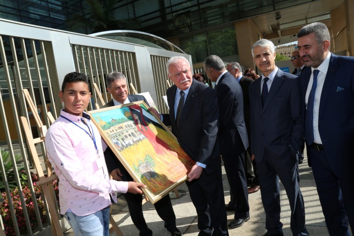 وتخلل الحفل افتتاح معرض للاشغال اليدوية الفلسطينية ورسوم لطفل فلسطيني عمره 13 عاما يجسد انتماءه لفلسطين.