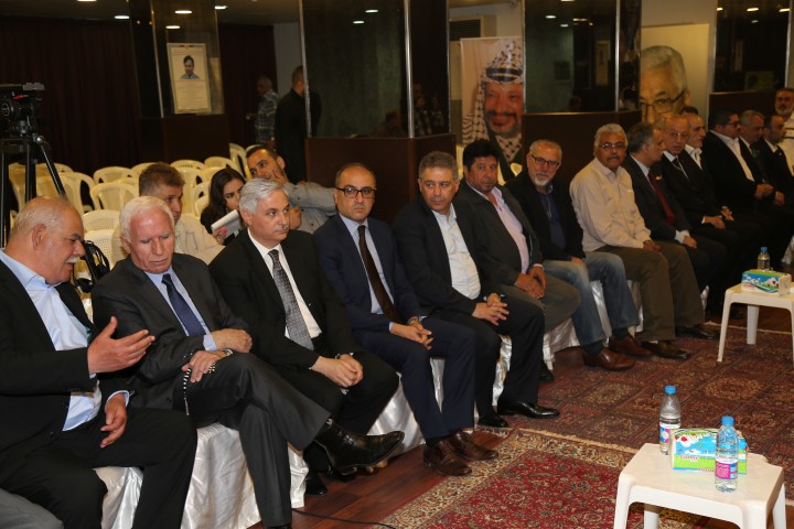 والقى الاحمد كلمة استعرض فيها سيرة المناضل القائد عثمان ابو غربية منذ ان انضم الى صفوف حركة فتح وهو في ريعان شبابه كمقاتل في صفوف الثورة الفلسطينية، وتنقله في تحمل المسؤولية العسكرية والتنظيمية والسياسية وفي المجلس الوطني الفلسطيني.