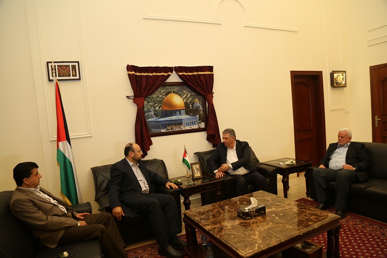 استقبل سفير دولة فلسطين في لبنان اشرف دبور وامين سر فصائل منظمة التحرير الفلسطينية وحركة فتح فتحي ابو العردات اليوم الخميس، ممثل حركة حماس في لبنان علي بركة يرافقه مسؤول العلاقات السياسية بالحركة زياد الحسن.