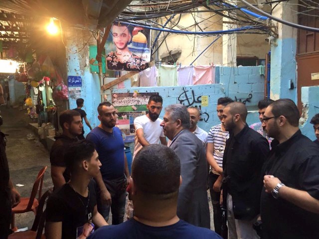 السفير دبور يتفقد صباح يوم العيد مخيم برج البراجنة ويقدم واجب التهنئة لعدد من الأسر الفلسطينية بيروت ٦-٧-٢١٠٦ تفقد سفير دولة فلسطين لدى لبنان اشرف دبور اليوم الاربعاء، وجال في ازقة المخيم مطمئنا و مهنئا ابناء شعبنا بمناسبة حلول عيد الفطر السعيد. وتفقد بعض الأسر في منازلهم مهنئا و مطمئنا على اوضاعهم الحياتية والمعيشية واعرب الاهالي عن تقديرهم لهذه الزيارة التي تعبر عن مدى التواصل والتكامل بين أبناء شعبنا كافة.