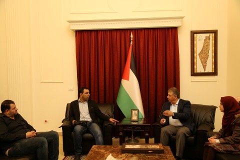 استقبل سفير دولة فلسطين في لبنان اشرف دبور: الشاعره الفلسطينية ثناء هرشا ووالدها حسين هرشا ، بحضور الشاعر عبد المحسن محمد.