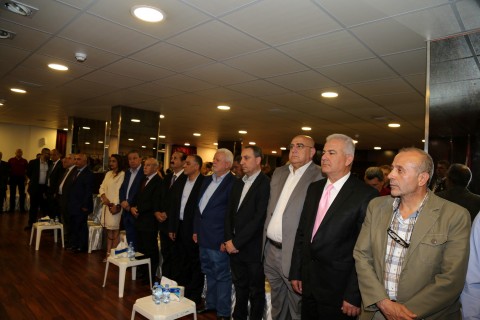 حضر حفل التكريم: أمين سر حركة فتح وفصائل منظمة التحرير الفلسطينية في لبنان فتحي أبو العردات، أمين عام المؤتمر الوطني الشعبي للقدس اللواء بلال النتشة، امين سر نقابة ممثلي هيئة الاذاعة والتلفزيون في لبنان علي كلش، ممثلو الاحزاب اللبنانية والفصائل الفلسطينية، وحشد من الشعراء والكتاب والادباء والفنانين اللبنانيين والفلسطينيين.