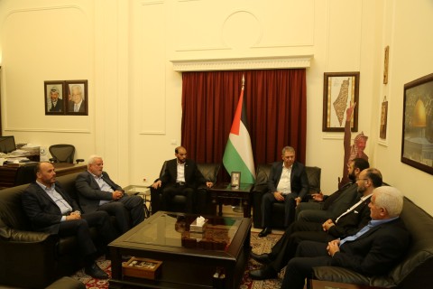 واستعرض الجانبان آخر المستجدات والتطورات على صعيد القضية الفلسطينية وبخاصة انهاء الانقسام وتعزيز الوحدة الوطنية الفلسطينية، وأكد المجتمعون حرصهم على تطبيق ما تم الاتفاق عليه في القاهرة وفق الجدول الزمني وعلى كافة المستويات والسير معاً وسوياً وجنباً الى جنب للوصول الى انجاز المشروع الوطني الفلسطيني بانهاء الاحتلال وتحقيق اهداف شعبنا بالحرية والاستقلال والعودة.