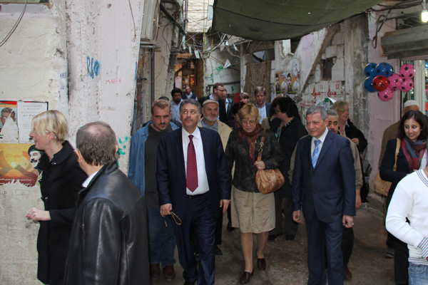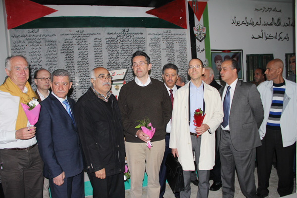 وزار الوفد مقبرة الشهيد علي أبو طوق في المخيم ووضع الورود على أضرحة الشهداء وجال في أزقة وطرقات المخيم.