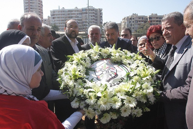 شارك في المناسبة الاليمة السفير اشرف دبور عضو المجلس الثوري ، امين سر حركة فتح في لبنان عضو المجلس الثوري فتحي ابو العردات، القنصل محمود الاسدي، امين سر حركة فتح في بيروت سمير ابو عفش واعضاء قيادة المنطقة، ممثل حركة حماس في لبنان علي بركة، عضو المكتب السياسي للجبهة الديمقراطية علي فيصل، عضو المكتب السياسي للجبهة الشعبية مروان عبد العال، مسؤول العلاقات السياسية في ندوة العمل الوطني هاني فاخوري، منسق عام الحملة الاهلية لنصرة فلسطين والعراق معن بشور، رئيس المجلس الاسلامي الفلسطيني في الشتات فضيلة الشيخ الدكتور محمد نمر زغموت، ممثلو القوى السياسية والوطنية اللبنانية، اعضاء قيادة الساحة والاقليم، ممثلو فصائل م.ت.ف وتحالف القوى الفلسطينية والقوى الاسلامية الفلسطينية وممثلو اللجان الشعبية في لبنان.