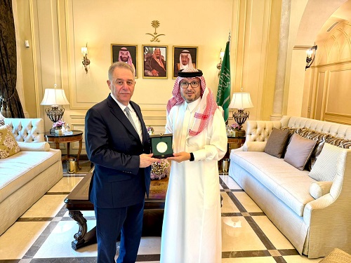 وقدم السفير بخاري للسفير دبور قلادة سفارة المملكة العربية السعودية تقديراً لجهوده في تعزيز وتمتين العمل العربي المشترك خلال فترة مهامه في لبنان.