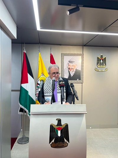 واشار الى خطوات الرئيس بالاستمرار ببناء مؤسسات الدولة وتجسيدها على ارض الواقع والدعوة الى انتخابات شاملة للمجلس الوطني واطلاقه الدعوة لمن لم ينضم الى منظمة التحرير الفلسطينية القيام بذلك بالتزام برنامجها السياسي الذي يؤكد التمسك بحقوق شعبنا المشروعة التي كفلتها القوانين والمواثيق الدولية.