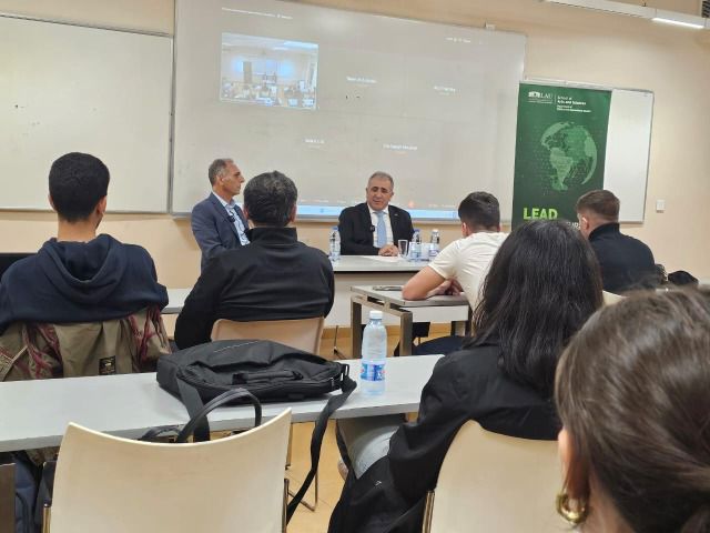 حاضر سفير دولة فلسطين لدى الجمهورية اللبنانية الدكتور محمد الأسعد، في الجامعة اللبنانية الأميركية، تحت عنوان: "السلام العادل ،الرؤية الفلسطينية والحلول الممكنة". استهل السفير الأسعد المحاضرة بتوجيه الشكر الجزيل للدكتور عماد سلامة مسؤول قسم الدراسات السياسية والدولية والعدالة الاجتماعية وحل النزاعات و بالحضور المشارك. وقال السفير الأسعد: "يسعدني أن أكون بينكم اليوم في هذا الصرح الأكاديمي لأن الجامعات ليست مجرد أماكن لطلب العلم فقط، بل هي مساحات لبناء المستقبل وتنوير العقول الساعية وراء الحق والحقيقة". و أكد الأسعد أن "الرؤية الفلسطينية هي دولة فلسطينية مستقلة وعاصمتها القدس، وحل عادل لقضية اللاجئين وفق قرارات الشرعية الدولية"، مؤكداً أن "حل الدولتين ممكن تحقيقه في حال توافرت الارادة الدولية عبر الضغط على دولة الاحتلال الامتثال لكافة القرارات الدولية الخاصة بالقضية الفلسطينية". واعتبر السفير الأسعد أن "المطلوب هو الاعتراف الدولي الكامل بدولة فلسطين وقبولها عضواً كامل العضوية في الأمم المتحدة، مما يساهم في احلال السلام في منطقة الشرق الأوسط وينزع فتيل الصراعات". وقدم السفير الأسعد شرحاً مفصلاً حول المراحل التي مرت بها القضية الفلسطينية منذ "وعد بلفور" مروراً بالنكبة وانطلاق الثورة الفلسطينية وصولاً لانتفاضة الحجارة، وتوقيع اتفاقيات أوسلو وعودة النضال الفلسطيني إلى أرضنا واستشهاد الرئيس القائد ياسر عرفات". وأشار السفير الأسعد إلى "تبني الرئيس محمود عباس خيار المواجهة الدبلوماسية والمقاومة الشعبية السلمية طريقاً لنيل حقوقنا المشروعة"، معتبراً أن "حصول فلسطين على صفة مراقب في المنظمة الدولية وانضمامها إلى العشرات من الاتفاقات والمعاهدات الدولية، هو انجاز كبير على طريق استعادة حقوقنا الكاملة". ولفت إلى أن "الوحدة الوطنية خيار أساسي لدى القيادة الفلسطينية تحت مظلة "منظمة التحرير الفلسطينية" الممثل الشرعي والوحيد لشعبنا في كافة أماكن تواجده"، مؤكداً أن "مصلحة شعبنا الصابر والصامد يجب أن تكون الأولوية على أجندة الكل الفلسطيني". ونوه السفير الأسعد ب"دور المملكة العربية السعودية بقيادة الملك سلمان بن عبد العزيز وولي عهده الأمير محمد بن سلمان مع الصديقة فرنسا في حشد الدعم الدولي للاعتراف بدولة فلسطين ما رفع عدد الدول المعترفة إلى 159 دولة". كما أشاد الأسعد ب"دور كل من مصر والاردن الداعم لموقف الرئيس محمود عباس والقيادة الفلسطينية في مواجهة المخططات الإسرائيلية الهادفة إلى تهجير شعبنا من أرضه". وأكد الأسعد أن "العدوان الإسرائيلي استهدف وجود شعبنا في قطاع غزة عبر تنفيذ حرب إبادة شنتها دولة الاحتلال اسفرت عن استشهاد وجرح ونزوح مئات الالاف من أبناء شعبنا وتدمير شبه كامل للقطاع وفقدان كافة مقومات الحياة فيه". وحول العلاقات اللبنانية - الفلسطينية شكر السفير الأسعد "لبنان رئيساً وحكومة وشعباً لاحتضانهم القضية الفلسطينية وتحملهم تداعياتها"، مؤكداً على "عمق العلاقات بين الشعبين اللبناني والفلسطيني والالتزام بمخرجات القمة التي عقدها الرئيس محمود عباس مع الرئيس اللبناني العماد جوزاف عون في أيار الماضي، والتزام دولة فلسطين بسيادة واستقرار لبنان الشقيق وبسط سلطته على كافة أراضيه بما فيها المخيمات الفلسطينية، وتسليم السلاح، والعمل على تخفيف معاناة شعبنا اللاجئ بالتنسيق والتعاون الرسمي بين البلدين". و تم توجية أسئلة من الحضور، أجاب عليها السفير الأسعد.