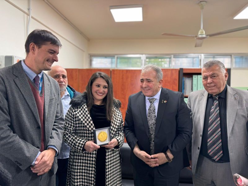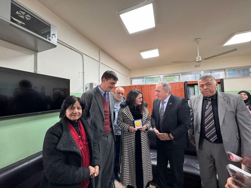وقدم السفير الاسعد قلادة الرئيس محمود عباس لخلايلة تقديراً لجهودها وعطائها في تحفيز اجيالنا الصاعدة على مواصلة مسيرتهم التعليمية
