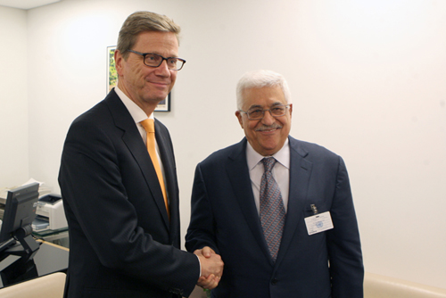 وفي وقت لاحق استقبل الرئيس محمود عباس، في مقر إقامته بنيويورك، وزير خارجية ألمانيا غيدو فيسترفيلي.