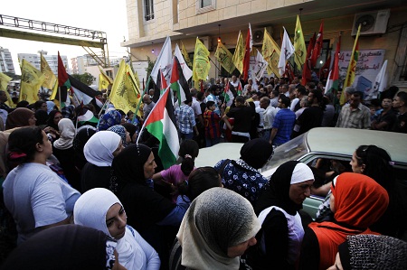 من جهته قال أبو العرادات: 'نلتقي اليوم من أجل هدف نضالي وسامي، من أجل فلسطين دعماً وتأييداً لموقف القيادة الفلسطينية ودعم موقف الرئيس محمود عباس بنيل عضوية دولة مراقب في الأمم المتحدة، الرئيس محمود عباس خليفة الرئيس الشهيد أبو عمار المتمسك بالثوابت الوطنية وحق اللاجئين بالعودة إلى ديارهم'.