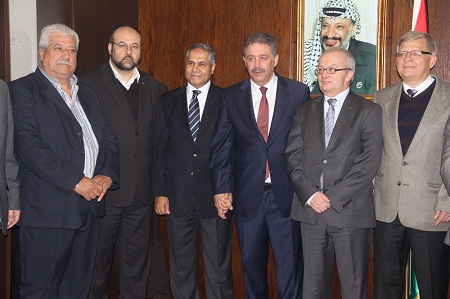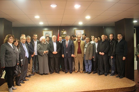وكان في استقبال الضيوف: سفير دولة فلسطين في لبنان اشرف دبور، امين سر فصائل منظمة التحرير الفلسطينية وحركة فتح في لبنان فتحي ابو العردات،نائب الامين العام لجبهة التحرير الفلسطينية ناظم اليوسف،عضو المكتب السياسي للجبهة الشعبية لتحرير فلسطين مروان عبد العال،عضو المكتب السياسي للجبهة الديمقراطية لتحرير فلسطين علي فيصل،ممثل حركة حماس في لبنان علي بركة،مسؤول الجبهة العربية الفلسطينية محيي الدين كعوش،مسؤول حزب الشعب غسان ايوب وممثلو فصائل منظمة التحرير الفلسطينية وكادر السفارة.