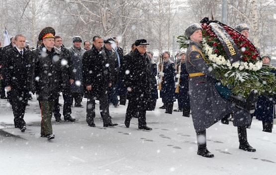 الرئيس يضع اكليلا من الزهور على نصب الجندي المجهول في موسكو