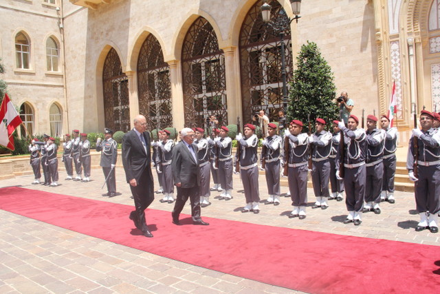وقال: 'نحن منذ أمس بدأنا الزيارة للبنان الشقيق، وكانت ضرورية جدا لأسباب كثيرة، أبرزها استمرار تمتين العلاقة اللبنانية-الفلسطينية في ما يضمن مصلحة لبنان ومصلحة شعبنا الفلسطيني، كذلك هناك قضايا أخرى تتعلق بالمسيرة السياسية التي نخوضها هذه الأيام والتي نأمل أن نصل إلى اتفاق يجعلنا نعود إلى طاولة المفاوضات، هناك قضايا أخرى عربية هي الوضع العربي الراهن الذي يعيشه العالم العربي، والذي كما ترون يعيش مخاضا عسيرا صعبا، ولكن أيضا كما تعلمون، إن الموقف الفلسطيني أننا لا نتدخل في الشؤون الداخلية العربية، ونحن نراقب ما يجري من أحداث تقع في هذه البلاد'.