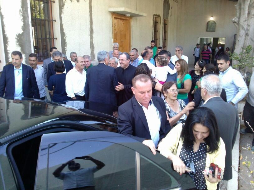 كان في استقبال الوفد كاهن كنيسة مار جورجيوس المظفر "عميد معاز" وعدد من رعية الكنيسة وشخصيات وفاعليات واهالي المخيم.