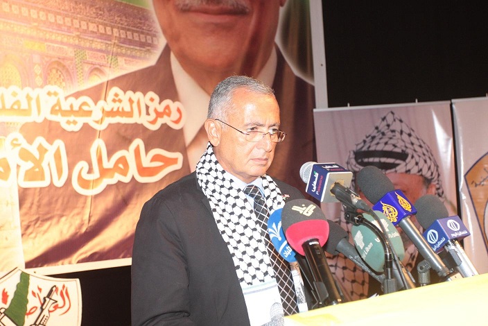 واستطرد قائلاً: ان صوت الرمز ياسر عرفات في الأمم المتحدة عام 1974 ما زال مدوياً بفضل السياسة الحكيمة التي اتبعها رفيق دربه الرئيس محمود عباس ابومازن حيث استطاع مؤخراً ومن على المنبر ذاته اطلاق الرسالة الفلسطينية للعالم اجمع مجدداً رسالة كشفت زيف الإدعاء الاسرائيلي بالسلام، كما كشفت كلمته قصور الأداء وانحياز الادارات الإمريكية المتعاقبة لإسرائيل رغم الإعتراف همساً بكذب ورياء حكام اسرائيل.