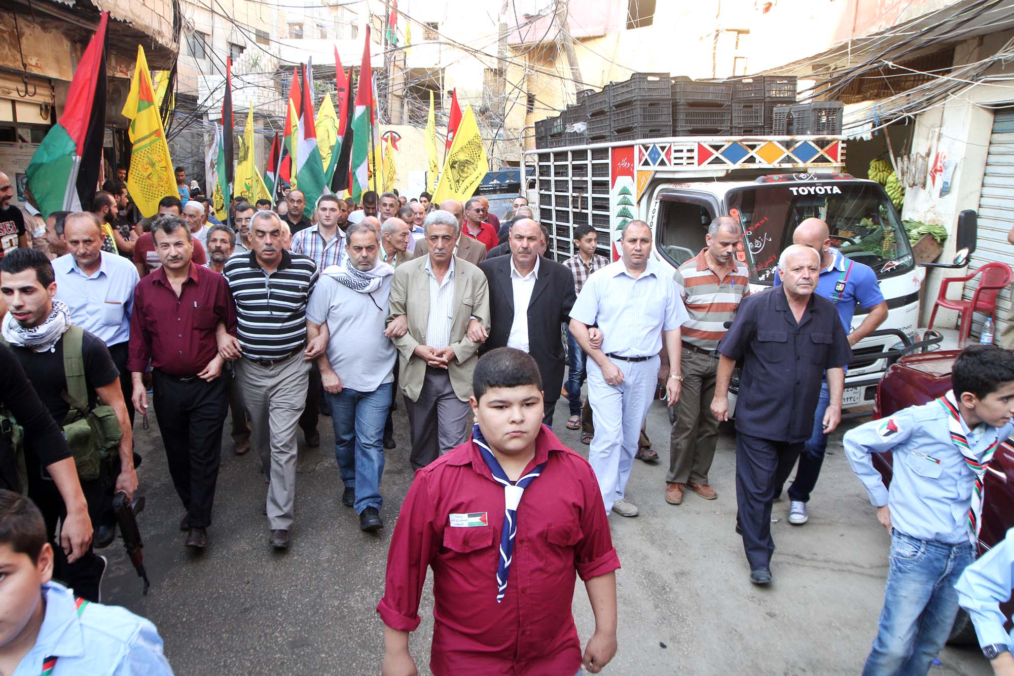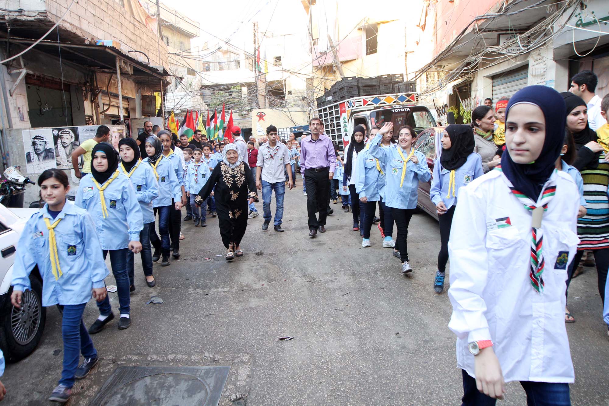 انطلقت المسيرة من امام جامع الفرقان، عند مدخل مخيم برج البراجنة باتجاه مقبرة المخيم تتقدمها الفرق الموسيقية والكشافة الفلسطينية وصور الرئيس الشهيد ياسر عرفات وسط زغاريد النسوة ورفرفة رايات حركة فتح، ووضع المشاركون اكليلاً من الورد على النصب التذكاري للشهيد ياسر عرفات.