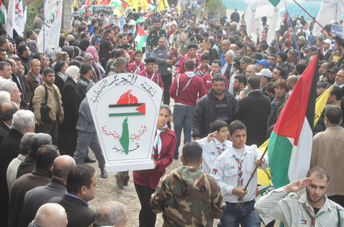 وكانت في المناسبة كلمة حركة فتح ألقاها أمين سر قيادة حركة فتح وفصائل منظمة التحرير الفلسطينية اللواء فتحي أبو العردات مستهلا كلمته بالتوجه بالتحية إلى روح من أطلق الرصاصة الأولى الشهيد الرمز ياسر عرفات ومن ثم التحية إلى فتح الثورة والشموخ التي قادت المشروع الوطني الفلسطينية بأمان وقدمت من اجل ذلك ألاف من الشهداء والجرحى والأسرى مؤكدا أن مسيرة فتح النضالية مستمرة بقيادة المؤتمن على الثوابت الأخ ابو مازن مؤكدا أن فتح ستبقىى تنضال في الداخل والشتات حتى يتحقق حلم الشهداء والأسرى بالعودة والحرية والدولة المستقلة وعاصمتها القدس الشريف.