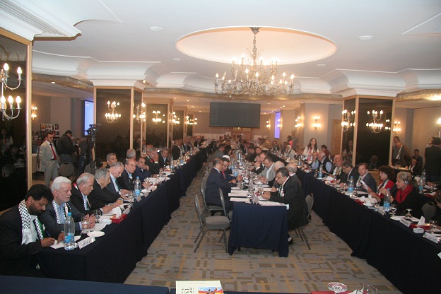 الجلسة الاولى ترأسها الامين العام السابق للمؤتمرالقومي العربي المحامي خالد السفياني من المغرب، فحيا "اسرى الحرية والكرامة في سجون الاحتلال الصهيوني، الذين صمدوا ويصمدون، ولا يساومون".