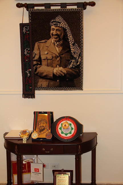 واعتبر تقديم هذا الدرع ووجوده في السفارة الفلسطينية هو وجود بكل بيت وفي كل مخيم فلسطيني.