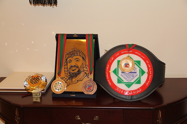 وقدموا درع البطولة العربية مع الميداليات عربون وفاء وتقدير للسفارة الفلسطينية البيت الجامع للشعب الفلسطيني في لبنان.