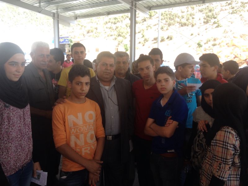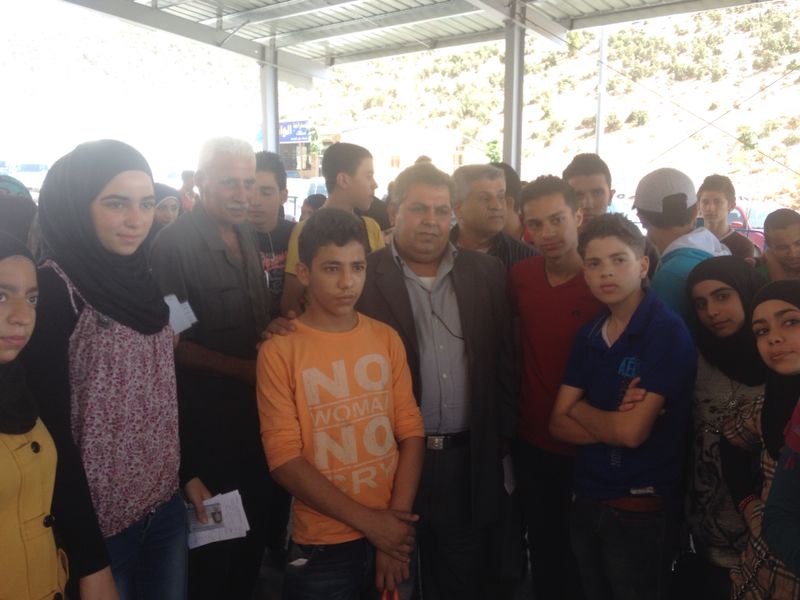 استقبل ممثل سفير دولة فلسطين في لبنان اشرف دبور المستشار الثقافي ماهر مشيعل الطلاب الفلسطينيين القادمين من سوريا الذي اجروا الامتحانات الرسمية المتوسطة للعام 2014 في سوريا، عند الحدود اللبنانية السورية.