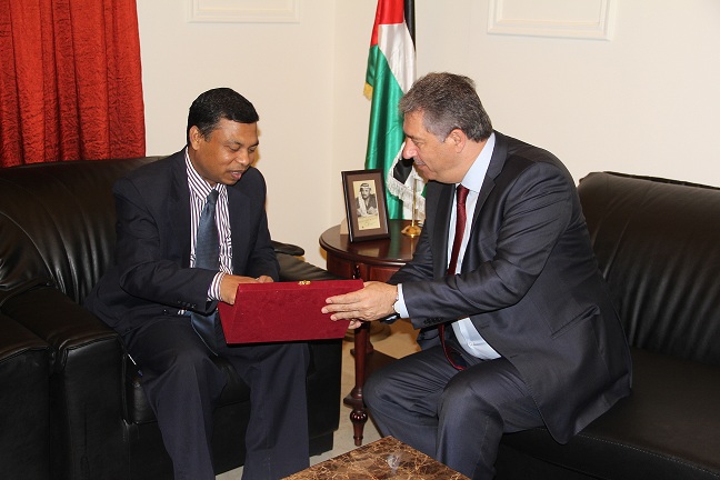 استقبل سفير دولة فلسطين في لبنان اشرف دبور، اليوم الاثني، سفير بنغلادش في لبنان بوسال عزام ساركو، في مقر السفارة.