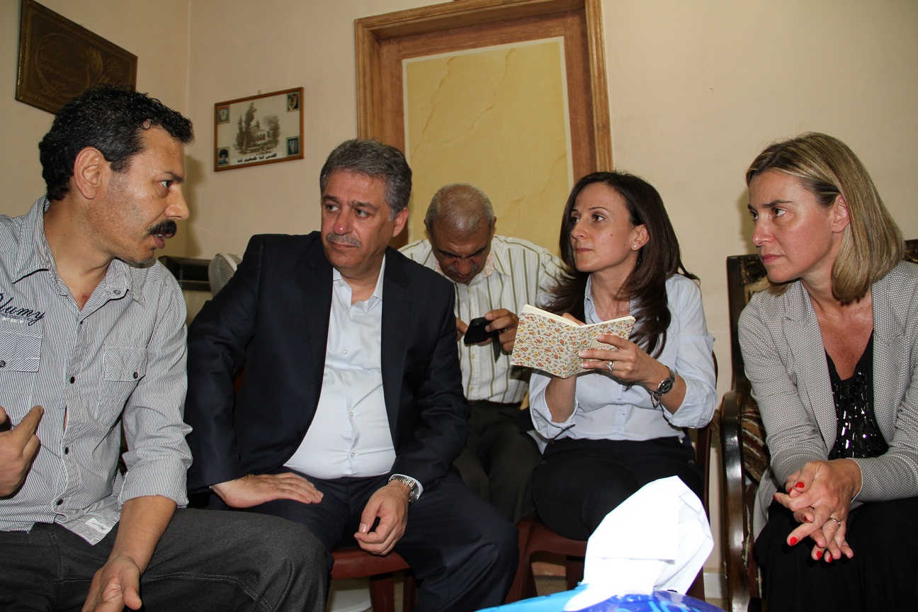 قامت وزيرة خارجية ايطاليا السيدة فريدريكا موغوريني بزيارة مخيم برج البراجنة للاجئين الفلسطينيين للاطلاع على اوضاع اللاجئين الفلسطينيين في لبنان والنازحين الفلسطينيين من سوريا رافقها السفير الايطالي في لبنان جوزيبيه مورابيتو ومدير عام وزارة الخارجية.