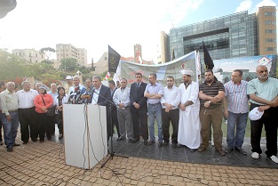 القاها الإعلامي هيثم أبو غزلان، قال فيها : نعيش في هذه الايام ذكرى اليمة علينا جميعا، هي الذكرى الـ47 لاحتلال العدو الصهيوني لسيناء والجولان وغزة والضفة الغربية والشطر الشرقي لمدينة القدس، وفي وقت يمعن العدو فيه بعدوانه الواسع على الانسان والارض قتلاً وتدميراً واستيطاناً وتهويداً في محاولة لانهاء وجودنا على هذه الارض، يخوض اسرانا في معتقلات الاحتلال منذ الرابع والعشرين من نيسان الماضي اضرابا جماعيا عن الطعام احتجاجا على استمرار اعتقالهم اداريا وللمطالبة بالافراج عنهم واغلاق ملف اعتقالهم الاداري ووضع حد لهذا السلوك المدان دوليا حيث تسلب حريتهم ويجري توقيفهم ويستمر احتجاز بعضهم لسنوات طويلة دون معرفة اسباب اعتقالهم ودون ان توجه اليهم اي تهمة.