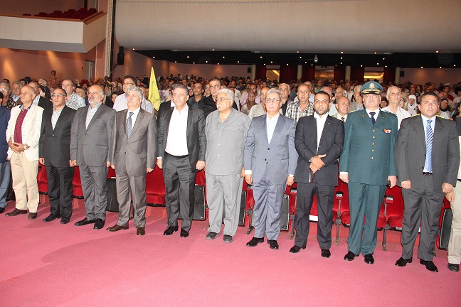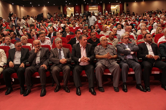 حضر اللقاء وزير العمل الفلسطيني احمد مجدلاني، سفير دولة فلسطين في لبنان اشرف دبور، رئيس اتحاد الكتاب اللبنانيين والحركة الثقافية في لبنان وجيه فانوس، الامين العام لاتحاد الكتاب الفلسطينيين مراد السوداني، نقيب الصحافة اللبنانية محمد بعلبكي، امين سر فصائل منظمة التحرير الفلسطينية في لبنان فتحي ابو العردات،منسق عام الحملة الاهلية لنصرة فلسطين والعراق معن بشور، ممثلي الاحزاب والقوى الوطنية اللبنانية والفلسطينية، ممثلي سفراء الدول العربية، ممثلي فصائل منظمة التحرير الفلسطينية وتحالف القوى الفلسطيني، والشعراء باسم عباس، عبد القادر الحصني، ديزيرية سقّال، غسان مطر، طارق ناصر الدين، ووجدي عبد الصمد، وعدد كبير من المثقفين والاعلاميين.