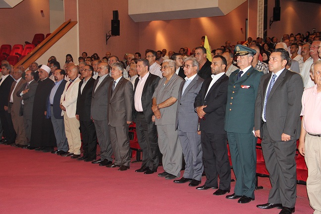 والقى كلمة الاتحاد العام للكتاب والأدباء الفلسطينيين الأستاذ مراد سوداني جاء فيها: ما بين فلسطين ولبنان خيط فعلاً مقدساً يليق بالبطوله والسادة الشهداء، وليس غريباً هذا التداعي الحر والمعافى في الحركة الثقافية اللبنانية واتحاد الكتاب اللبنانيين مع صلب اتحاد الكتاب الفلسطينيين للتذكر واعلاء سياق الوفاء بما يليق بشاعر استثنائي ومختلف، رحل طائر الرعد الفلسطيني حصار الشعر والجماليات ، العفي كزند المحارب، النقي كفلق الصبح، الشقي بحب البلاد، الندي كدمعة ام الشهيد، العلي كصوت البلاد الذي لا يرتج ولا ينكسر، انقطع من ربابة الوعي والانشاد الشعري الفلسطيني والعربي اشد الاوتار واكثرها عمقاً ونزفاً، الوتر المتين المكين، برسم الشاعر الذي ظل ممسكاً بالجماليات والعناد المقدس في جغرافيا السحر الالهي، في الجليل الاعلى حيث جبل حيفا الذي من على صهوته اعلى سميح القاسم منصة اطلاق الشعر الملتزم فلا حد لمديح السيد الشاعر ولا حد لتعداد فضائله وهو بتراب بلاده رافضاً ان يخرج من بلاده الا ليعود اليها كراً وفراً كالكمنجة في الرباعيات كما قال الشاعر محمود درويش.