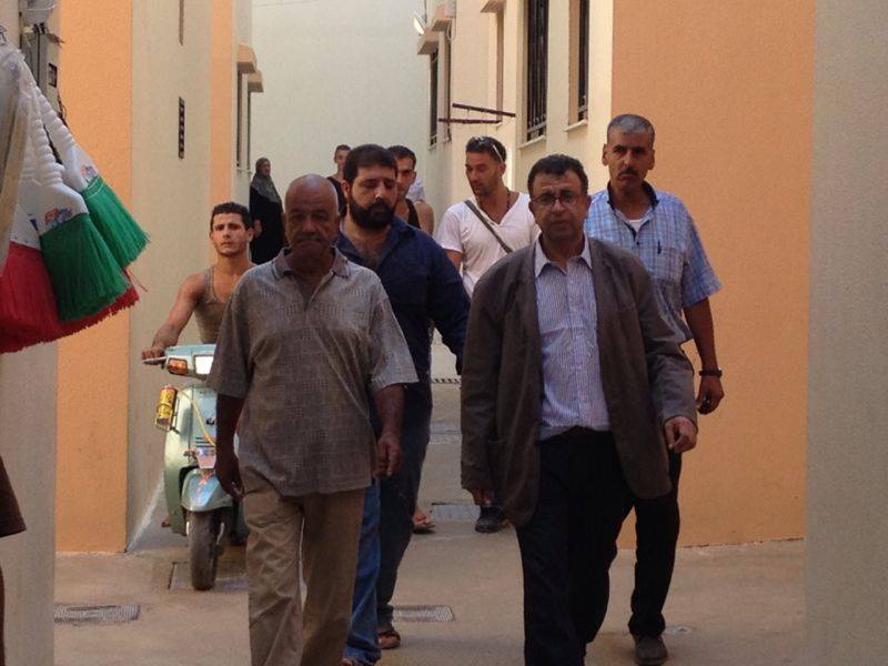 كان في إستقبال الوفد ممثلو الفصائل واللجان الشعبية وفعاليات من أهالي المخيم في لقاء في مكتب مدير مشروع إعادة إعمار المخيم جال الوفد في المخيم القديم وزار بعض المنازل التي جرى إعادة بناءها وإستمع الى اصحابها .
