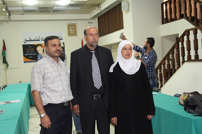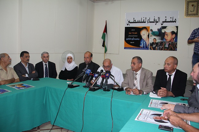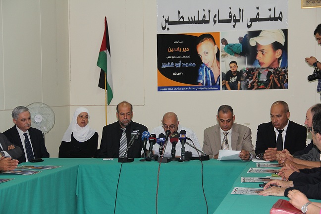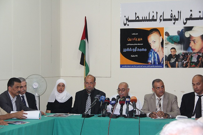 عقد ملتقى الوفاء لفلسطين مؤتمر صحفي لعائلة "الشهيد محمد ابو خضيرة " لإطلاع الرأي العام على تفاصيل الجريمة البشعة التي ارتكبها مستوطنون اسرائيليون وبتغطية من جنود الاحتلال، بحق الشهيد محمد ابو خضير، في قرية شعفاط، و البالغ من العمر 16 عاما، حيث احرق حيّاً بعد التعذيب، وذلك في دار الندوة.