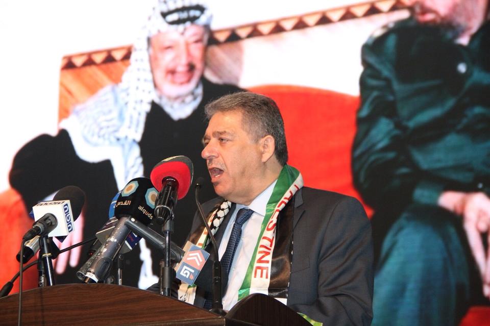 اود ان انقل لكم اهلنا الصامدين الصابرين العائدين تحيات رئيسنا محمود عباس المسكون بكم وباوضاعكم الى ان يلتقيكم باذن الله، كما اعيد تاكيد سياسته السياسة الفلسطينية العامة التي تؤكد على دعم تدخل الجانب الفلسطيني في الشأن اللبناني وعدم اقحام نفسه في مسائله الداخلية احتراماً لسيادة لبنان والتزاماً بسيادته وسيادتنا تندرج في حرصنا عليها قلوبنا تذهب اليه داعياً لاستقرار الامن والسلم وعقولنا تثق بالحكمة اللبنانية وقدرة اللبنانيين على الحفاظ على لبنان الاحبة جميعاً اسمحوا لي ان احييكم تحية ياسر عرفات ورفاقة باسم اعضاء مجلس امناء مؤسسة ياسر عرفات وعنه الرجل الذي رحل عنا رحل عن لبنان وفلسطين الفلسطيني اللبناني او كما يقال اللبناني الفلسطيني السيد هاني فحص، واللبناني الفلسطيني سعيد خوري، وكل منهما كان عملاقنا وانساناً وثائراً وكلاهما معاً يضرب اروع مثلاً في عمق النضال المشترك في دحر الاحتلال من اجل انجاز استقلال فلسطين، رحم الله السيد هاني فحص ورحم الله المعلم سعيد خوري .