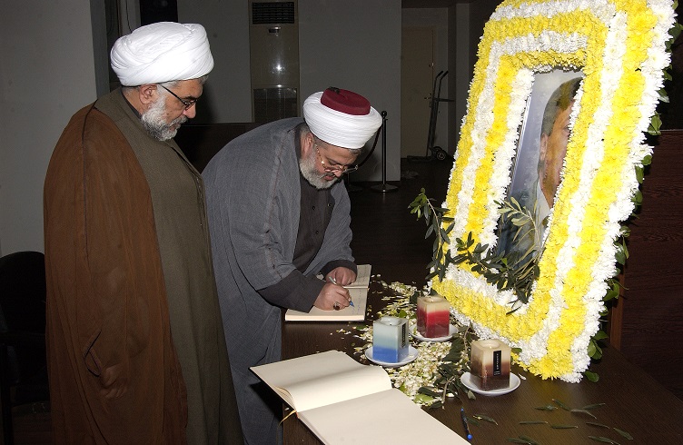 تقبلت سفارة دولة فلسطين ومنظمة التحرير الفلسطينية وحركة التحرير الوطني الفلسطيني والفصائل الفلسطينية التعازي بالشهيد الوزير القائد زياد ابو عين" عضو المجلس الثوري لحركة فتح ورئيس هيئة مقاومة الجدار والاستيطان في قاعة الشهيد ياسر عرفات.