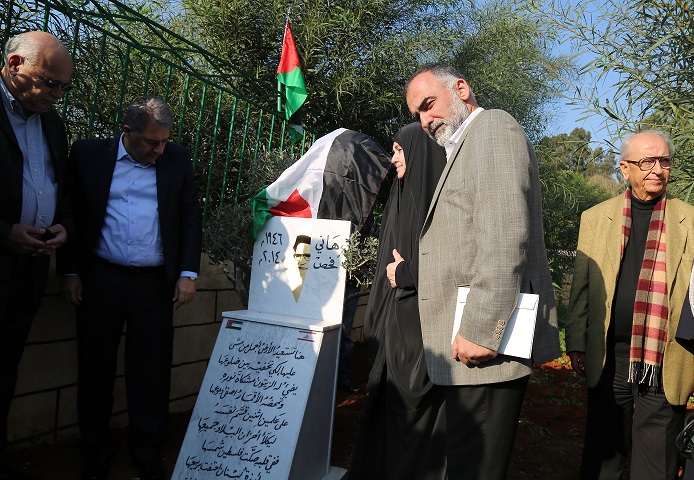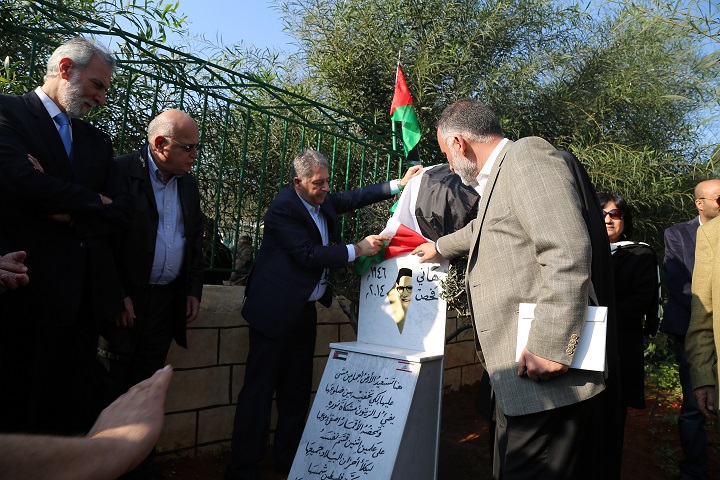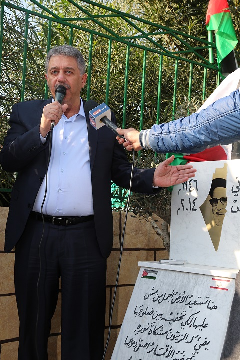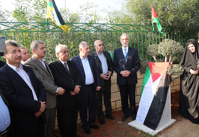 نعتز اليوم بأننا نلتقي هنا لنزرع شجرته شجرة الوفاء من لبنان الشهداء والابطال الى فلسطين، هذا الفلسطيني اللبناني صحيح ان جثمانه يرقد في ضيعته وقريته الا ان شجرته شجرة الايمان في فلسطين ترقد هنا مع الشهداء والصديقين.