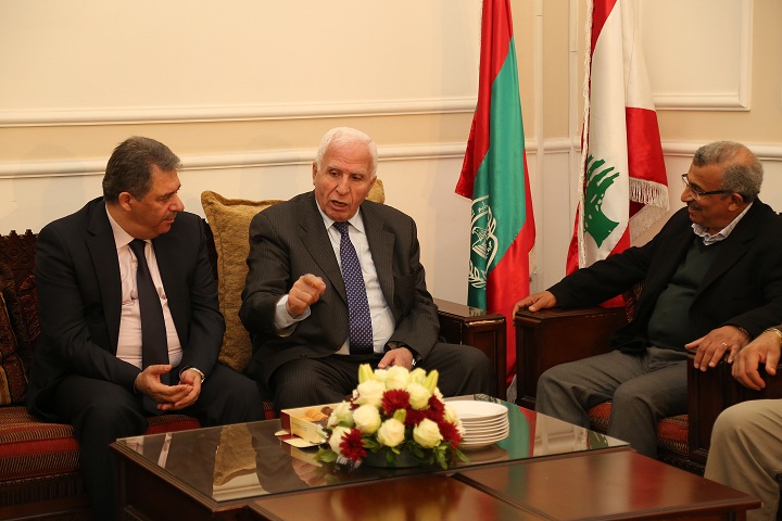 كما تم بحث الاحداث الراهنة في لبنان ووضع المخيمات الفلسطينية وخاصة عين الحلوة، ومحاولة اطراف خبيثه زج المخيمات الفلسطينية وعين الحلوة باحداث لا علاقه له بها، تارة تحت ذريعة ان هناك فارين من وجه العداله اللبنانية ولجأوا الى المخيم، وتارة تهديدات متصاعدة لتفجير الوضع الامني في المخيم.