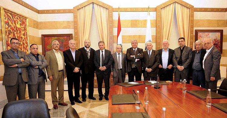 ضم الوفد: سفير دولة فلسطين في لبنان اشرف دبور، ممثل فصائل منظمة التحرير الفلسطينية وحركة فتح فتحي ابو العردات، ممثل الجهاد الاسلامي شكيب العينا، مسؤول الجبهة الشعبية مروان عبد العال، مسؤول الجبهة الديمقراطية علي فيصل، مسؤول القيادة العامة رامز مصطفى، مسؤول حركة حماس علي بركة، مسؤول حزب الشعب غسان ايوب، مسؤول جبهة التحرير الفلسطينية صلاح اليوسف، منظمة الصاعقة غازي حسن وحسن زيدان.