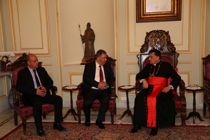 زار سفير دولة فلسطين في لبنان اشرف دبور، صباح اليوم، غبطة البطريرك الماروني الكاردينال مار بشاره بطرس الراعي في بكركي، بحضور مستشار اول حسان ششنية.