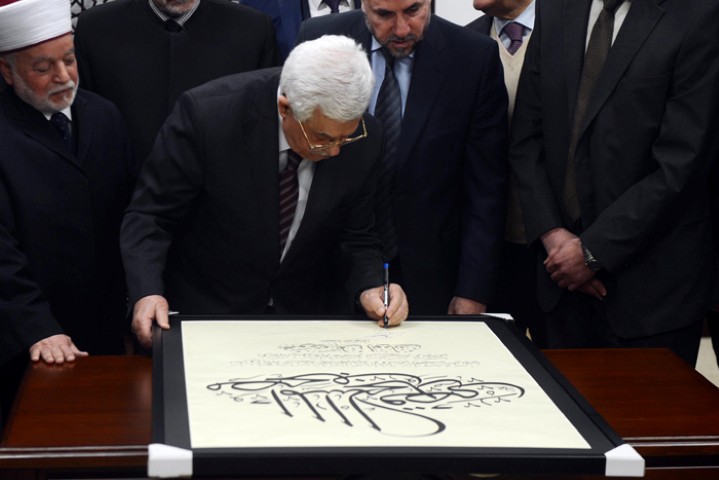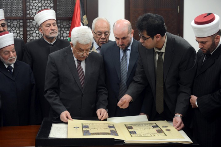 وقع رئيس دولة فلسطين محمود عباس، اليوم الأربعاء، على انتهاء المرحلة الأولى من كتابة مصحف المسجد الأقصى المبارك، على يد الخطاط الفلسطيني ساهر الكعبي.