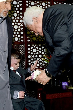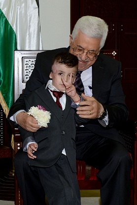 جاء ذلك لدى استقبال سيادته، مساء اليوم الثلاثاء، بمقر الرئاسة في مدينة رام الله، الطفل أحمد دوابشة وعائلته.