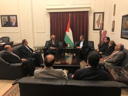 ونقل الوفد تحيات رئيس اللقاء الديمقراطي وليد جنبلاط للقيادة والشعب الفلسطيني ورفضه واستنكاره للقرار الامريكي وتأكيده موقفه التاريخي تجاه فلسطين وشعبها وعلى هوية القدس العربية ومركزية القضية الفلسطينية.
